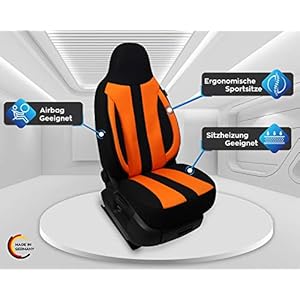 BREMER-SITZBEZUGE-Set-van-2-autohoezen-compatibel-met-Dacia-Spring-bestuurder-en-passagier-vanaf-2021-autostoelhoezen-hoezen-set-van-2-stuks-in-zwartoranje